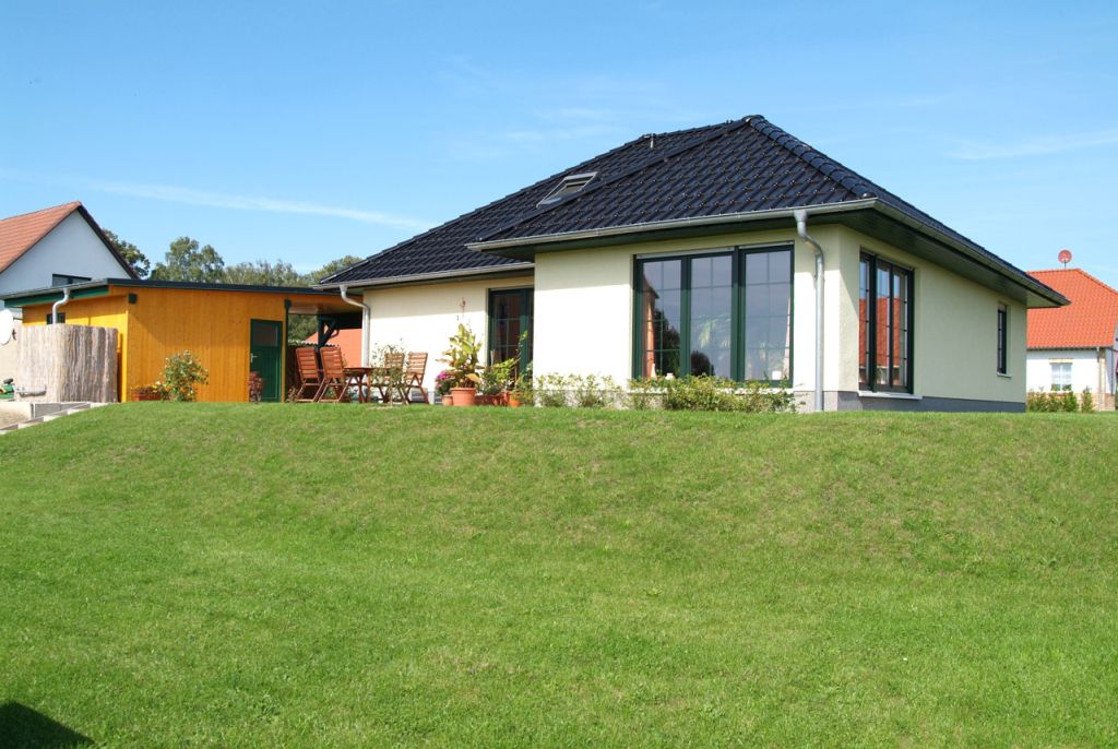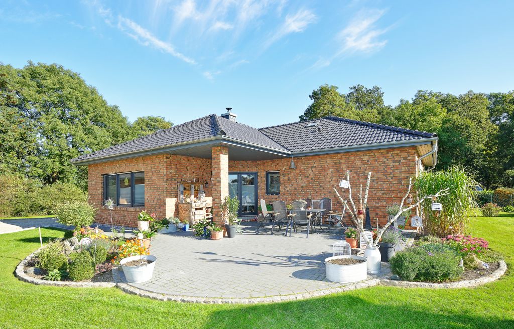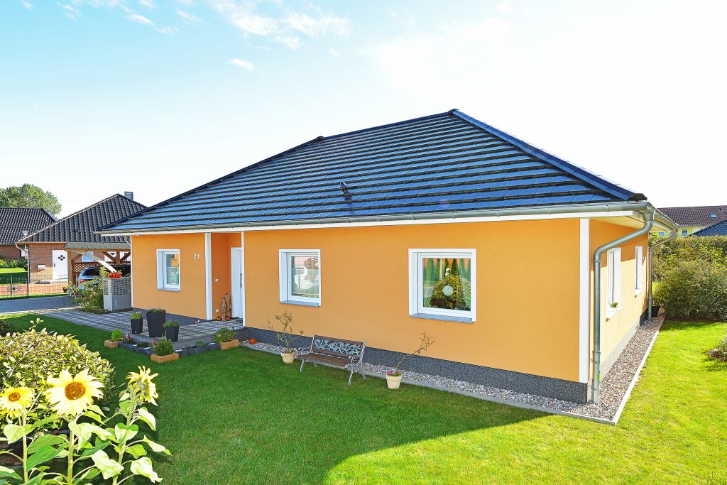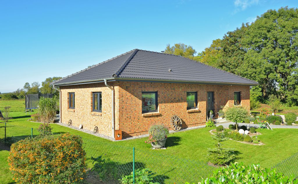 Wohnen auf einer Ebene -BUNGALOW- Alle funktionalen Wohnräume befinden sich auf einer Ebene. Der Dachausbau ist jederzeit möglich. Damit wird das Leben in einem Bungalow-Haus angenehm und barrierefrei.